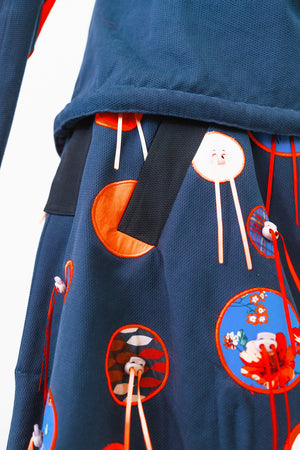 Beide Rockseiten wurden zu den Tunnelzügen abgesteppt und mit langen handbezogenen Schnüren ergänzt.