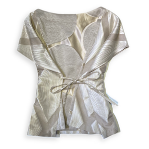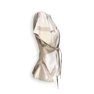 Ob vorne, hinten, innen, überkreuzt oder gar nicht gebunden; ob mit dem Vorderteil, wie gewohnt, nach vorne oder auch zum Rücken getragen; ob mit den Bändchen sichtbar von außen oder versteckt von innen- unsere "Takeshis" laden förmlich zum Experimentieren ein und überraschen jedes Mal mit einem völlig anderen Aussehen, einer völlig anderen Aussage!