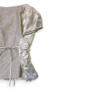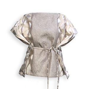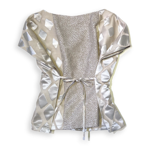 Ob vorne, hinten, innen, überkreuzt oder gar nicht gebunden; ob mit dem Vorderteil, wie gewohnt, nach vorne oder auch zum Rücken getragen; ob mit den Bändchen sichtbar von außen oder versteckt von innen- unsere "Takeshis" laden förmlich zum Experimentieren ein und überraschen jedes Mal mit einem völlig anderen Aussehen, einer völlig anderen Aussage!