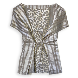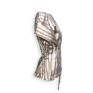 Ob vorne, hinten, innen, überkreuzt oder gar nicht gebunden; ob mit dem Vorderteil, wie gewohnt, nach vorne oder auch zum Rücken getragen; ob mit den Bändchen sichtbar von außen oder versteckt von innen- unsere "Takeshis" laden förmlich zum Experimentieren ein und überraschen jedes Mal mit einem völlig anderen Aussehen, einer völlig anderen Aussage!