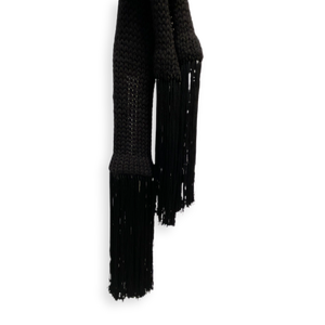 Dieser lange (ca. 160 cm ohne Fransen), schmale Strickschal ist cool und elegant.