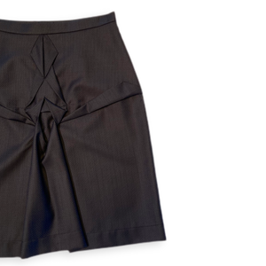 Das asymmetrische Rückenteil mit schrägen Teilungsnähten, handbezogener Knopf und handgeflochtener Riegel am Reißverschluss (für Nahtstabilität) runden das Ganze ab.