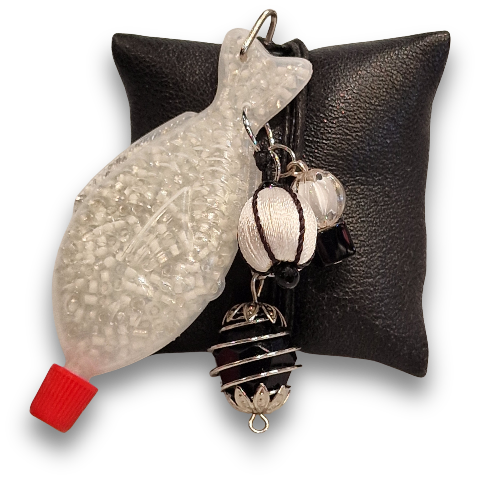 Diese Fischkette ist Upcycling pur, ein Appell, die alltäglichen Sachen zu hinterfragen und ihnen ein zweites Leben zu schenken.