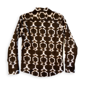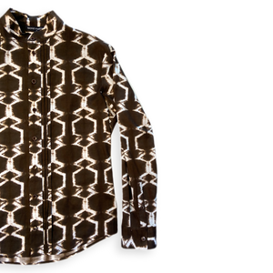 Dieses schlicht und elegant wirkende Hemd lebt von seiner Asymmetrie. Bei genauerer Betrachtung erkennt man die raffinierten Details, die das Kleidungsstück zu etwas ganz Besonderem und Hochwertigem macht.
