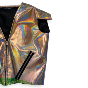 Der ganz besondere, feste Hologrammstoff ist ein absoluter Eye Catcher. Das edle Futter mit Hahnentrittmuster sorgt für das tolle Innenleben.