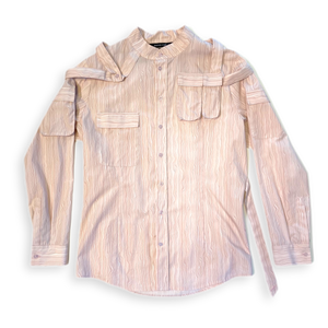 Bei diesem aufwändig gestalteten Hemd ist nicht nur der marmorierte Stoff etwas besonderes. Viele aufgesetzte Taschen und Bondageelemente machen dieses Kleidungsstück zu einem echten Eyecatcher und sorgen für einen Stilbruch!