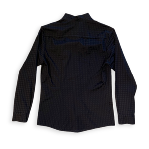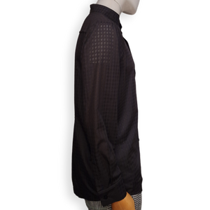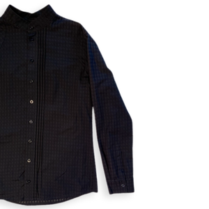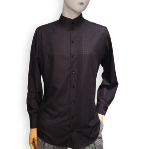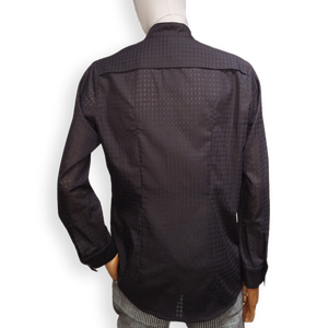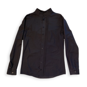 Dieses schlicht und elegant wirkende Hemd lebt von seiner Asymmetrie. Bei genauerer Betrachtung erkennt man die raffinierten Details, die das Kleidungsstück zu etwas ganz Besonderem und Hochwertigem macht. Der leicht transparente edle Stoff mit Hahnentrittmuster (Ausbrenner) rundet das Ganze ab.