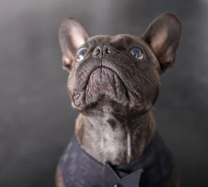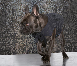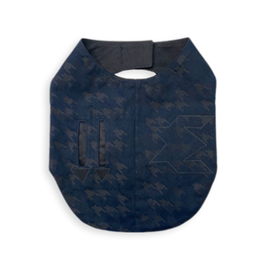 Diese Hundejacke, gefertigt aus japanischem Denim mit Hahnentrittmuster, ist Luxus pur und wurde für besondere Hundeanlässe designt.