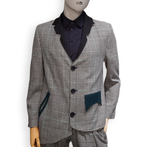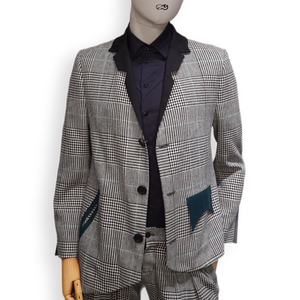 Unser Klassiker, der asymmetrische Sakko "FLGHFN" wirkt in Glencheck stylisch und cool.