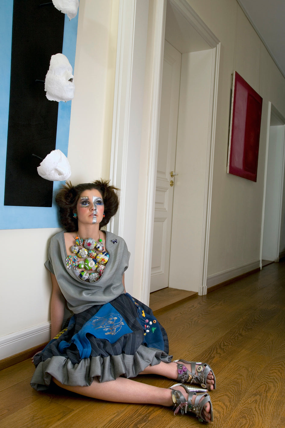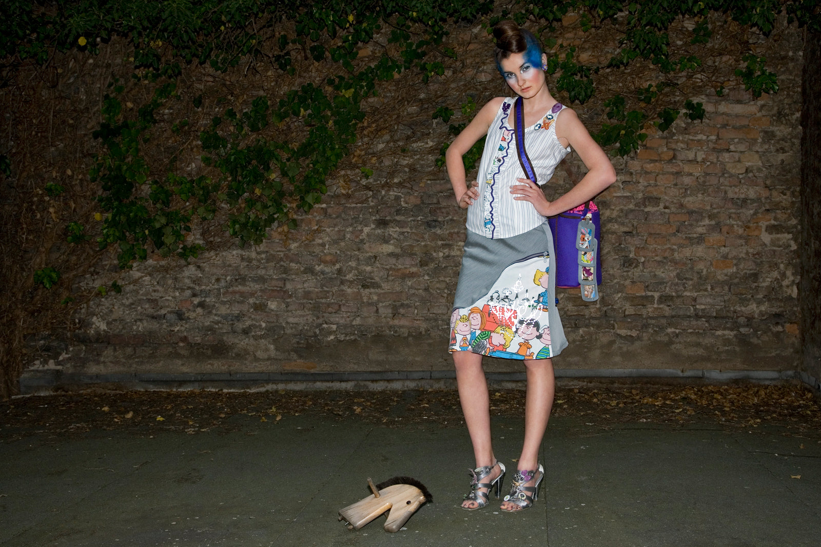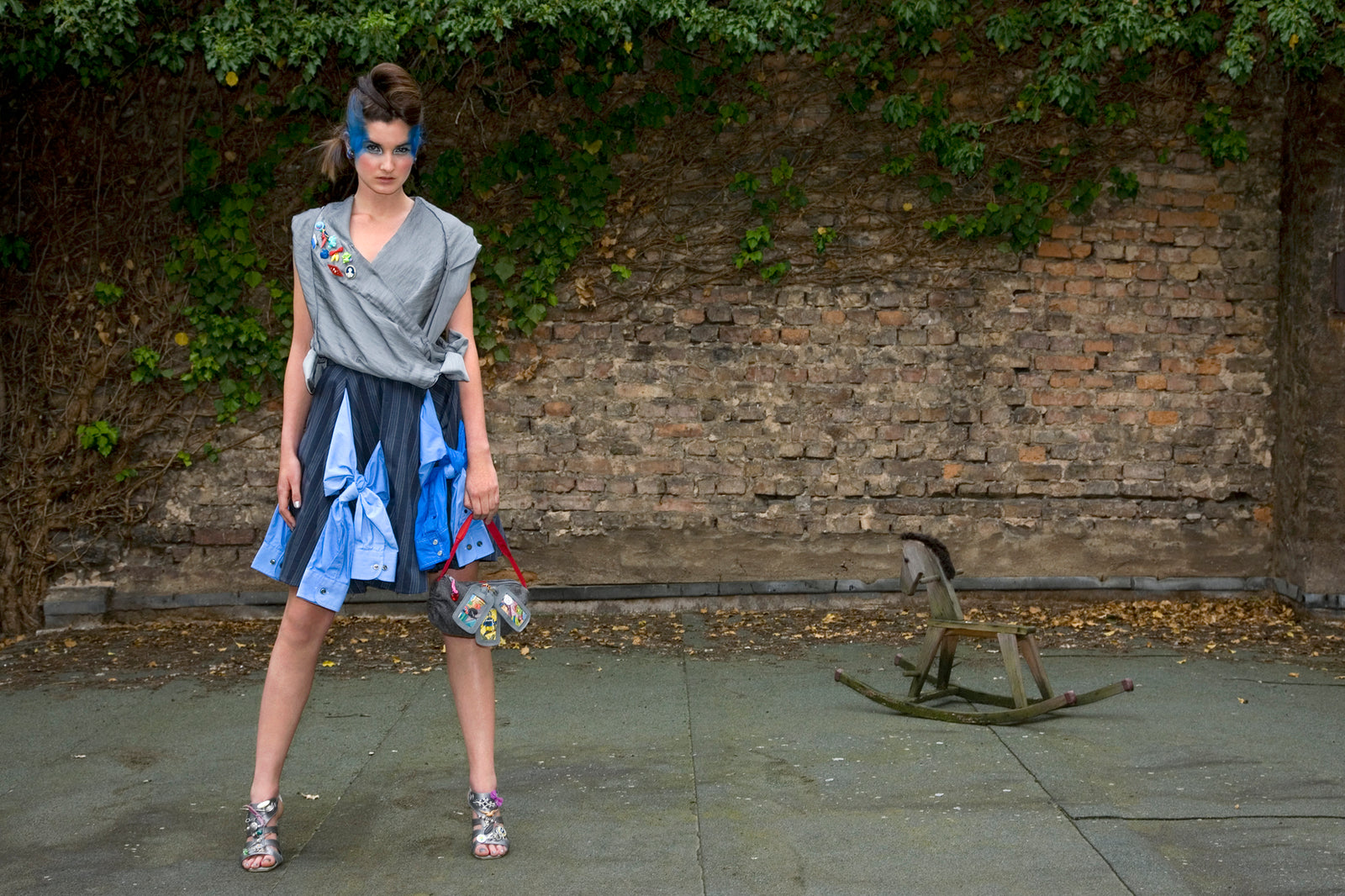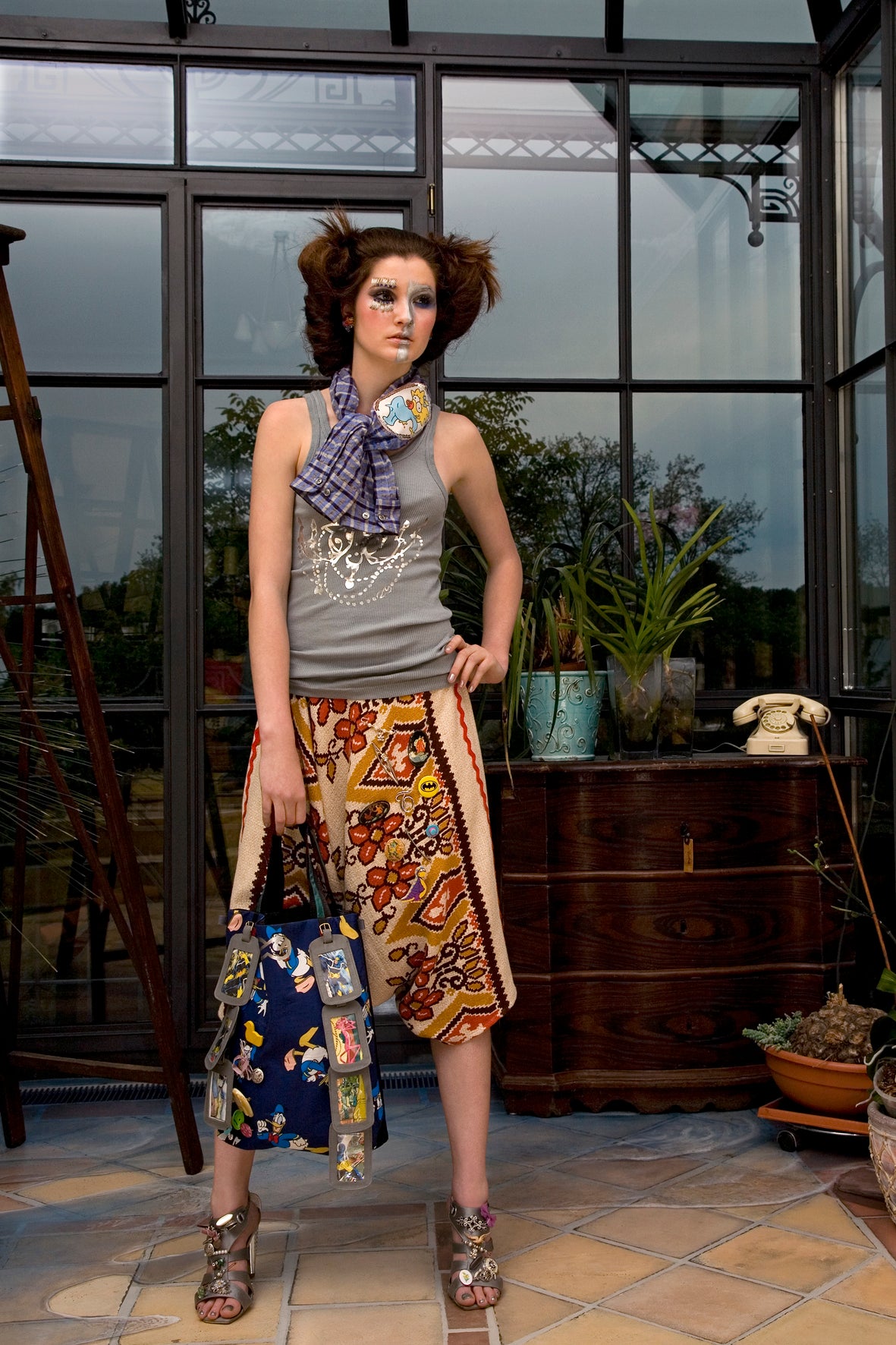 Die Protagonistin der Kollektion "Les contes du Château de ma grand mère" lebt in einer großen Metropole. Sie interessiert sich für Kultur, Mode, Architektur und Literatur. Inmitten von ihrem Leben erinnert sie sich an ihre Kindheit, die sie in Frankreich bei Ihrer Oma im Schloss verbracht hat, und an die Märchen, die ihre Oma erzählt hat. So werden Comics als moderne Märchen von ganz dezent und teilweise versteckt bis hin zu plakativ in moderne Kleider eingebaut. Ferner werden die Kleider dekonstruiert: auseinandergenommen und dann wieder zusammengefügt. Höhepunkt der Kollektion ist das Kinderthema, wo aus den Unterwäschen komplette Kleidungsstücke geschneidert werden. Ein Kronleuchter-Druck als Schloss-Symbol vollendet stilistisch die Geschichte.