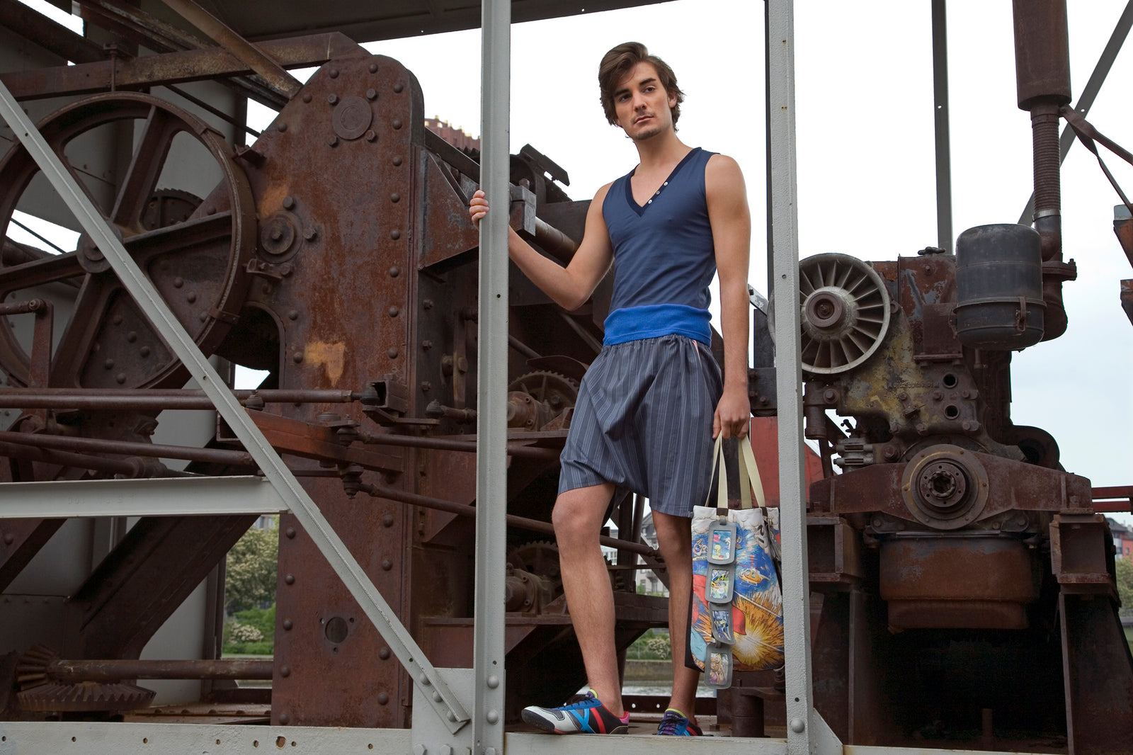 Die Herrenoutfits unterstützen die Kollektion in ihrer Dramaturgie und verleihen ihr einen deutlicheren roten Faden. In dieser Kollektion geht es um Kindheitserinnerungen und somit einer