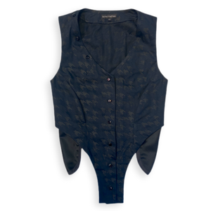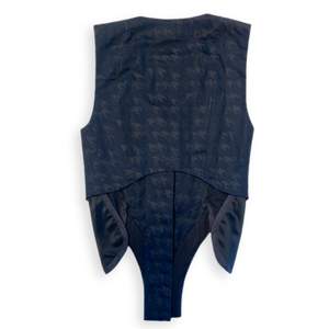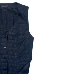 Aus japanischem Denim mit edlem Hahnentrittmuster gefertigt, lädt diese Weste förmlich zu einer Entdeckungsreise ein.