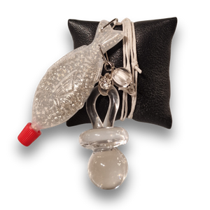 Sushi-Fisch mit Rocailles-Perlen gefüllt und Charm-Anhängern geschmückt. Das beschichtete Baumwollbändchen ist größenverstellbar (ca. 32-70cm).