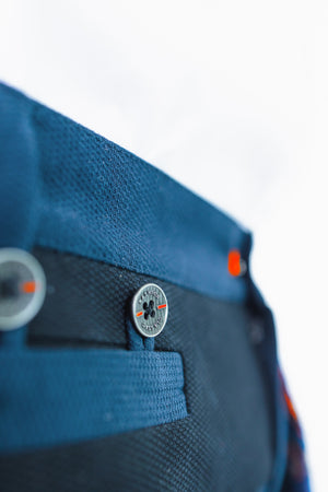 Zahlreiche Taschen, Asymmetrien, Teilungsnähte, aufgenähte Borten, kontrastierende Elemente, Handstiche , offene Kanten, verdeckte Reißverschlüsse in den Hosenbeinen unten, etc. machen dieses Kleidungsstück zu einem wahren Eyecatcher!