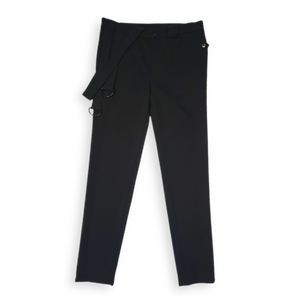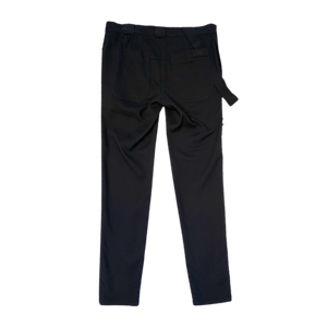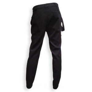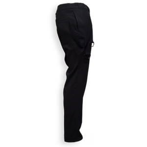 Diese Hose hat asymmetrische Seiten- und Gesäßtaschen.