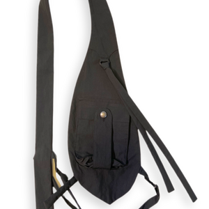 Sie ist asymmetrisch gestaltet und verfügt über eine geräumige Blasebalgtasche.