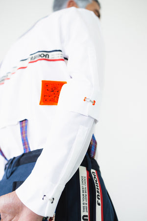 Dieses Hemd ist aus drei unterschiedlichen weißen Stoffen hergestellt, was für noch mehr Dynamik und Tiefe sorgt.