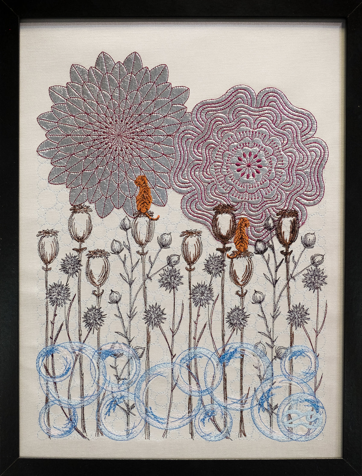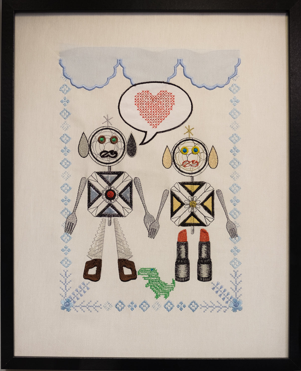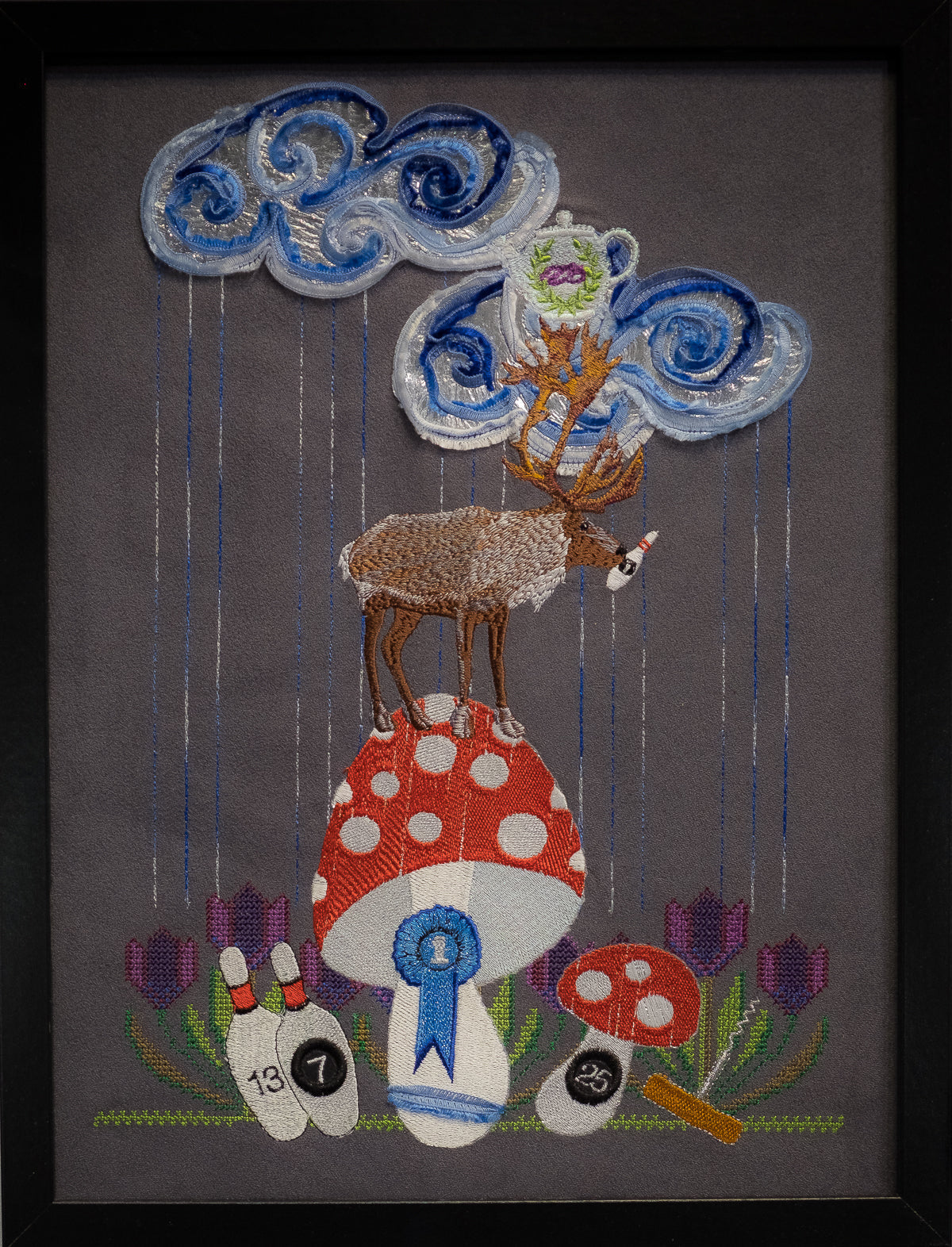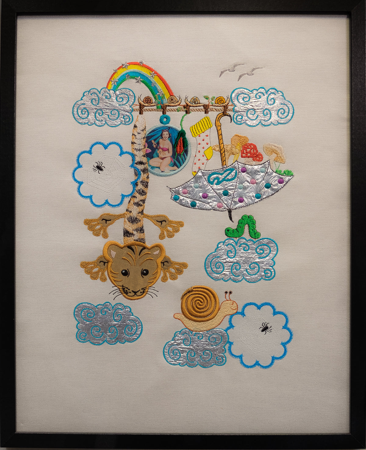 Jede bestickte Welt ist eine kleine Inszenierung, eine philosophische Kurzgeschichte, die mit Symbolen und tiefen Bedeutungen gefüllt ist, wie ein gutes altes Märchen.