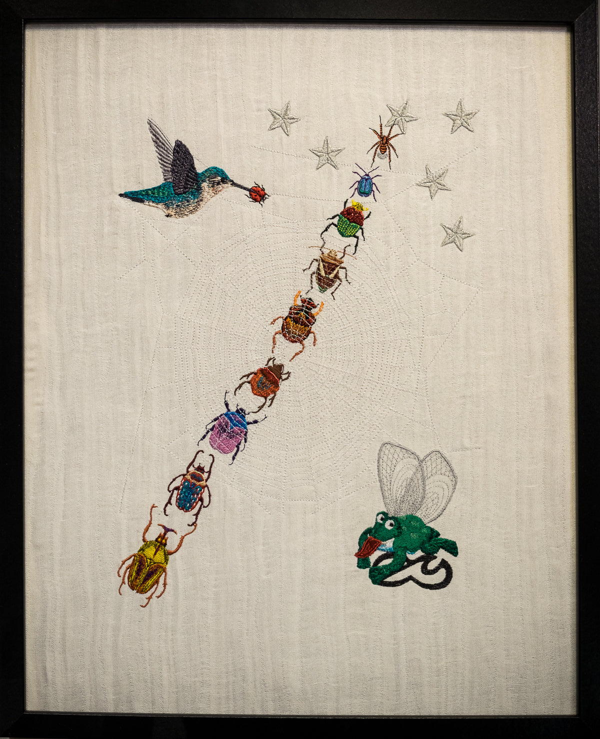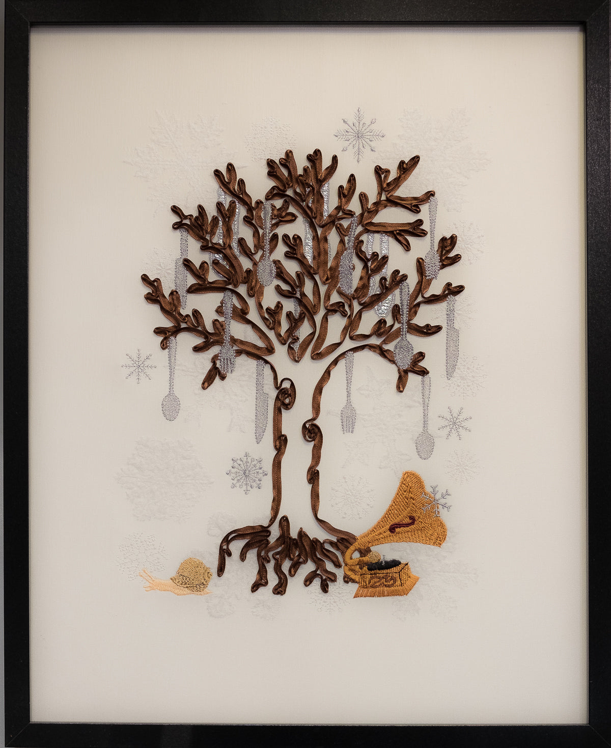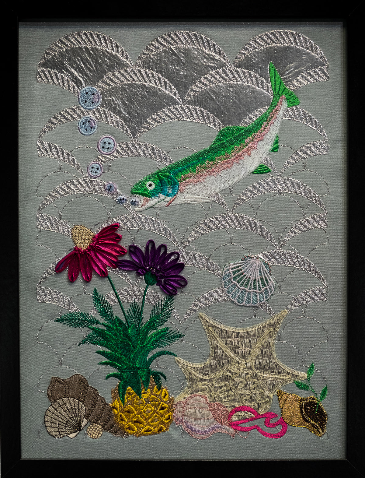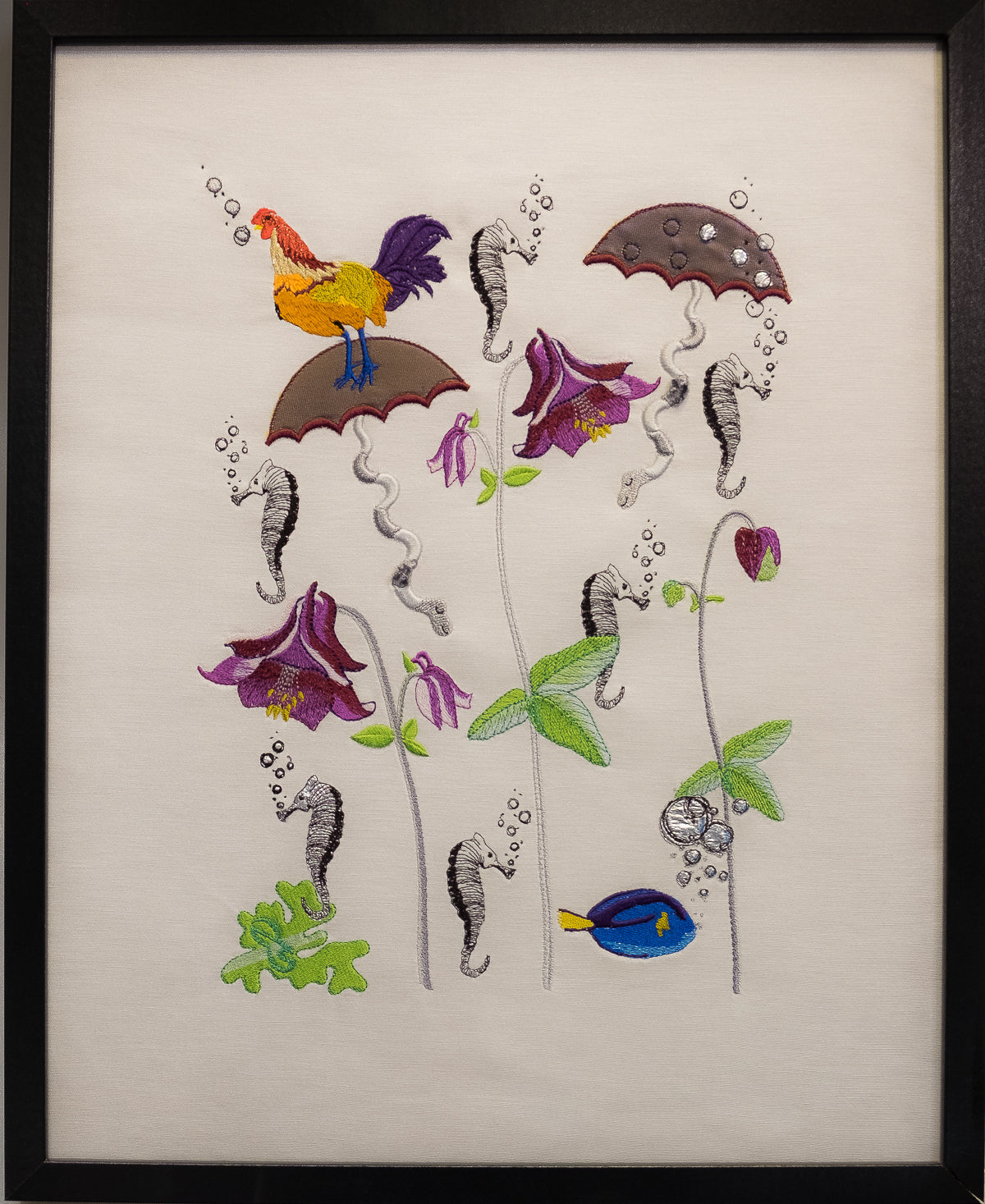 Jede bestickte Welt ist eine kleine Inszenierung, eine philosophische Kurzgeschichte, die mit Symbolen und tiefen Bedeutungen gefüllt ist, wie ein gutes altes Märchen.