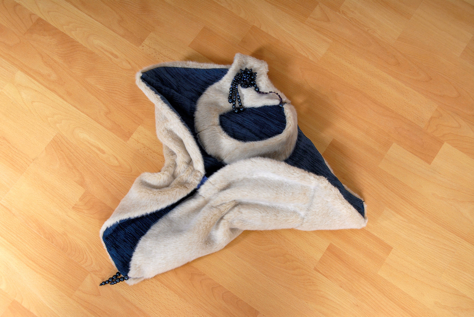 Aus dem lila-fliederndem Stoff gefertigt, schimmern sie in Rot. Sehr viele Teilungsnähte und Abnäher verleihen eine „zusammengestückelte” Optik. Die Säume sind zerrissen, aber trotzdem bleiben die Kleider sehr „couturig”. In diesem Gegensatz liegt hauptsächlich die Dramatik der Kollektion. Die Kleider haben sehr viele „unerwartete” Details, die etwas Unvollendetes, Unausgesprochenes haben. Es wird mit neuen Formen und Linienführungen gespielt. Die vielen  Handstickereien sehen so aus, als ob jemand in Eile die kostbaren Perlen und Pailletten über die Stoffe verschüttet hat.