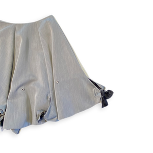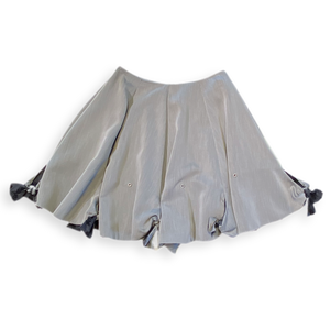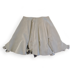 Dieser ausgestellter Rock hat zwei Tragemöglichkeiten: Entweder mit gebundenen oder offenen Schleifen, was für zwei völlig unterschiedlichen Aussagen sorgt.