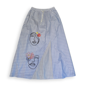 Aus zwei Stofflagen fein gewebter Baumwolle gefertigt, hat dieser leichte Rock zwei eingesetzte Keile vorne (kontrastierend und Ton in Ton), die zusammen ein großzügiges Godet bilden .