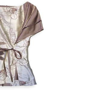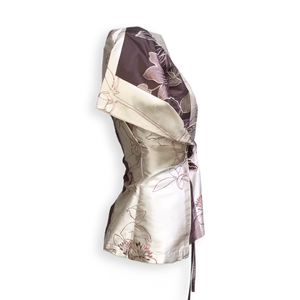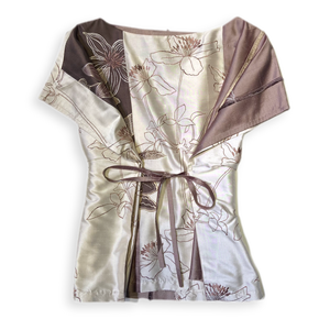 Ob vorne, hinten, innen, überkreuzt oder gar nicht gebunden; ob mit dem Vorderteil, wie gewohnt, nach vorne oder auch zum Rücken getragen; ob mit den Bändchen sichtbar von außen oder versteckt von innen- unsere "Takeshis" laden förmlich zum Experimentieren ein und überraschen jedes Mal mit einem völlig anderen Aussehen, einer völlig anderen Aussage!